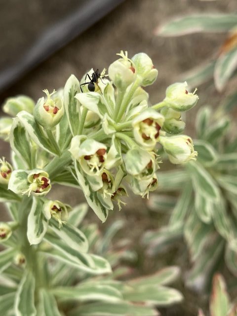 2年前に直植えしたユーフォルビアが初めて花を咲かせてます。