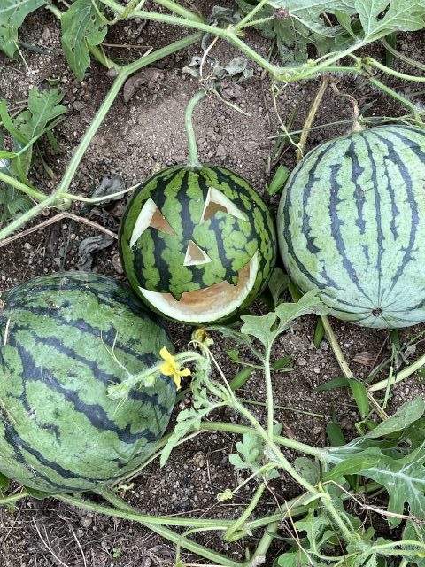 食べたスイカの種からできた小さなスイカ。