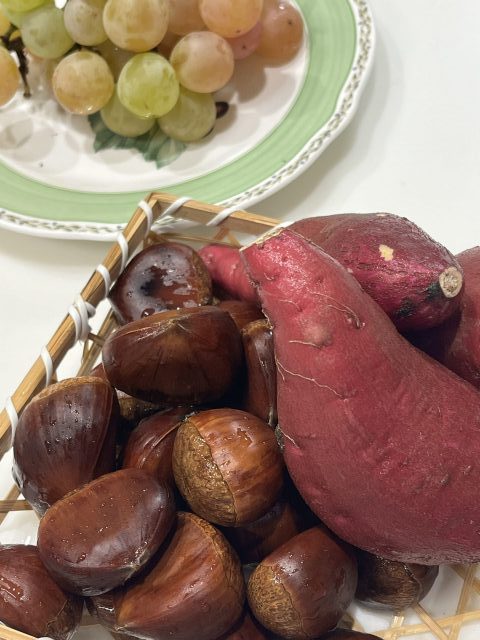 栗と紅はるか、安芸クイーンというブドウを買ってきました。