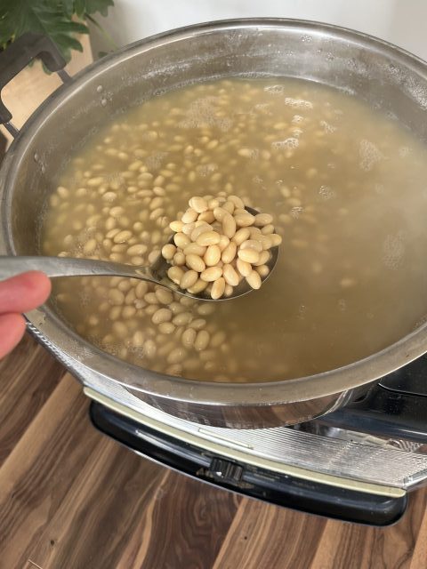 コトコト炊いた大豆を使って仕込みました。