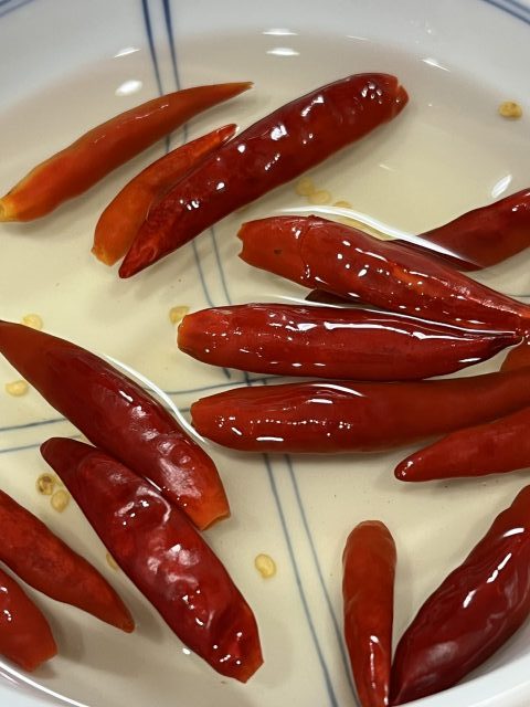 皆さんあまり辛いのはお好きではないので、種は取り除きました。